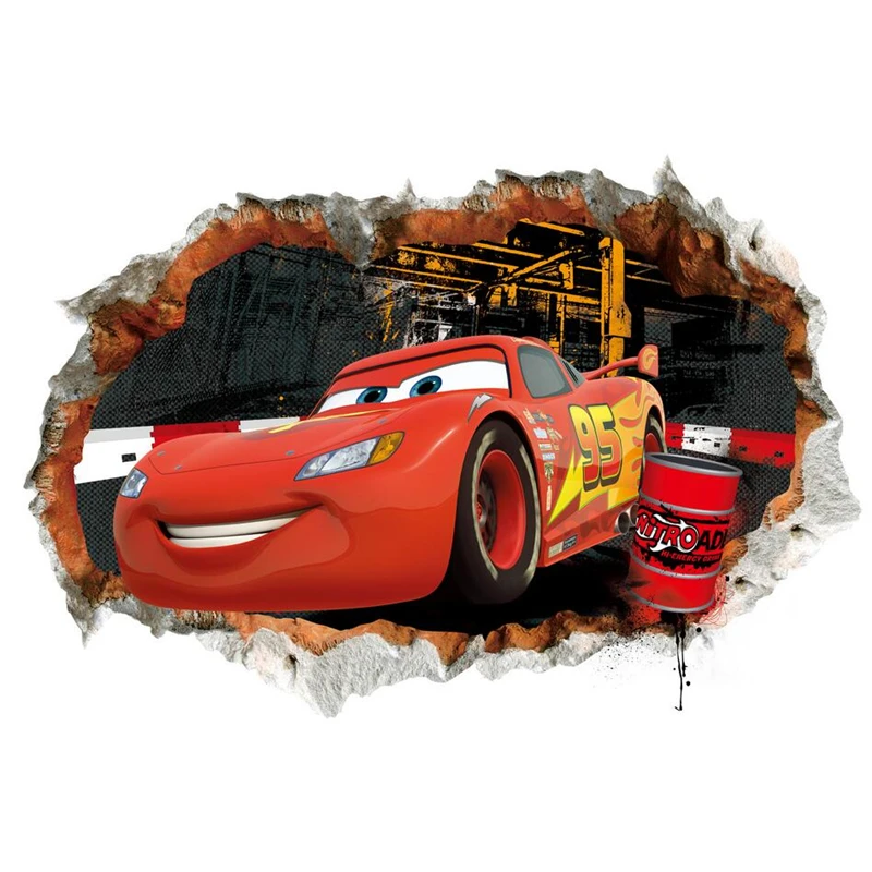 Мультяшные 3D эффекты автомобилей Маккуин наклейки на стену для дет...