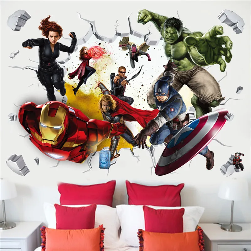3D Наклейка на стену мстители для мальчиков, самоклеящаяся Съемная ...