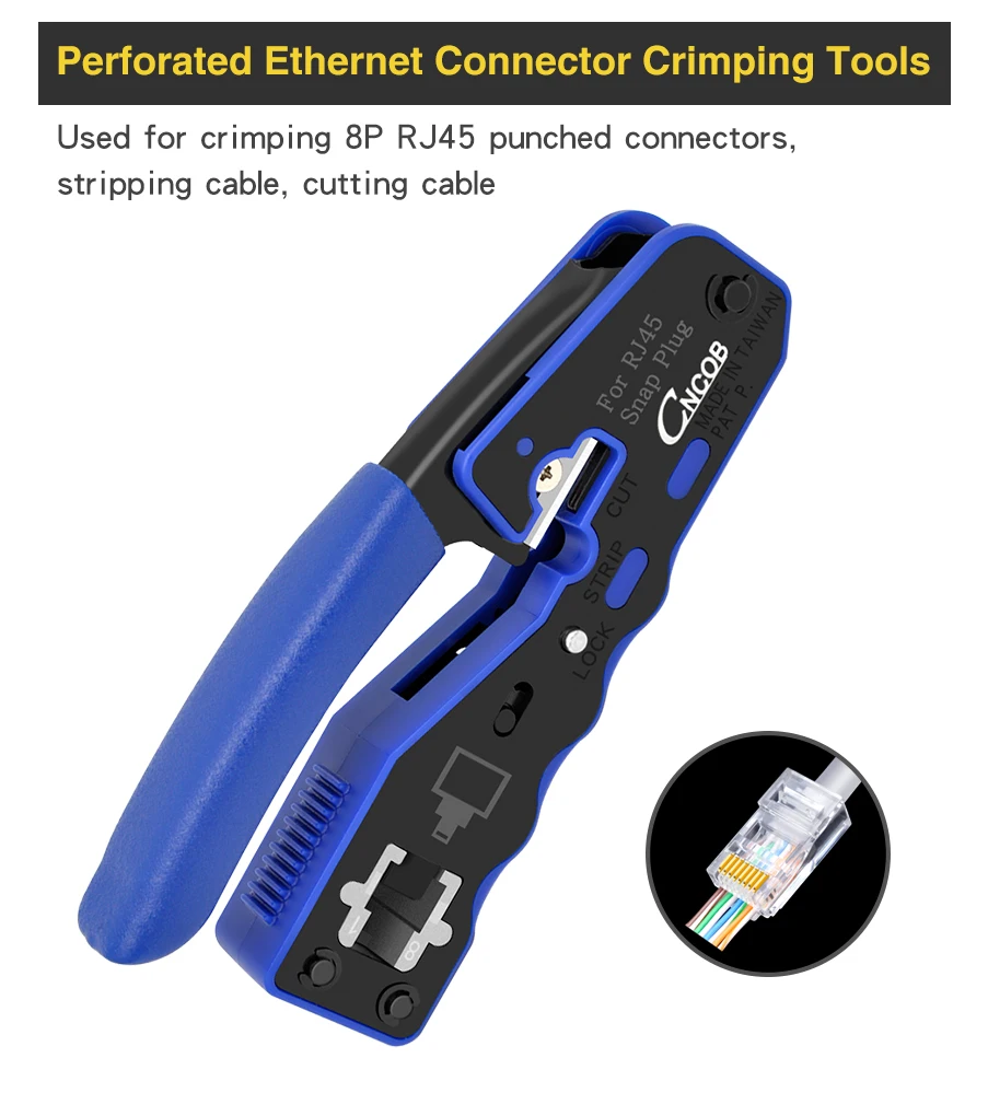 Набор инструментов для обжима RJ45 для Cat5, Cat6, Cat6a, экранированные модульные разъемы, 8P8C, обжимной инструмент, синий