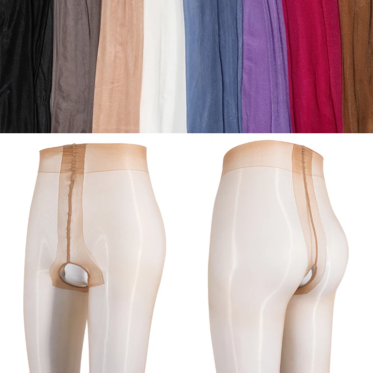 2021 Новое поступление, однотонные нейлоновые тонкие высокие эластичные прозрачные колготки, женские чулки, ночная Клубная одежда, сексуальные блестящие колготки с открытой промежностью