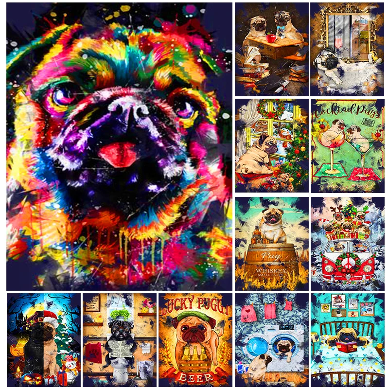 Алмазная вышивка с животными, 5ddiy, собака, алмазная живопись, мопс, алмазнаякруглая, полностью Алмазная инкрустированная, Рождественский узор, украшение для туалета