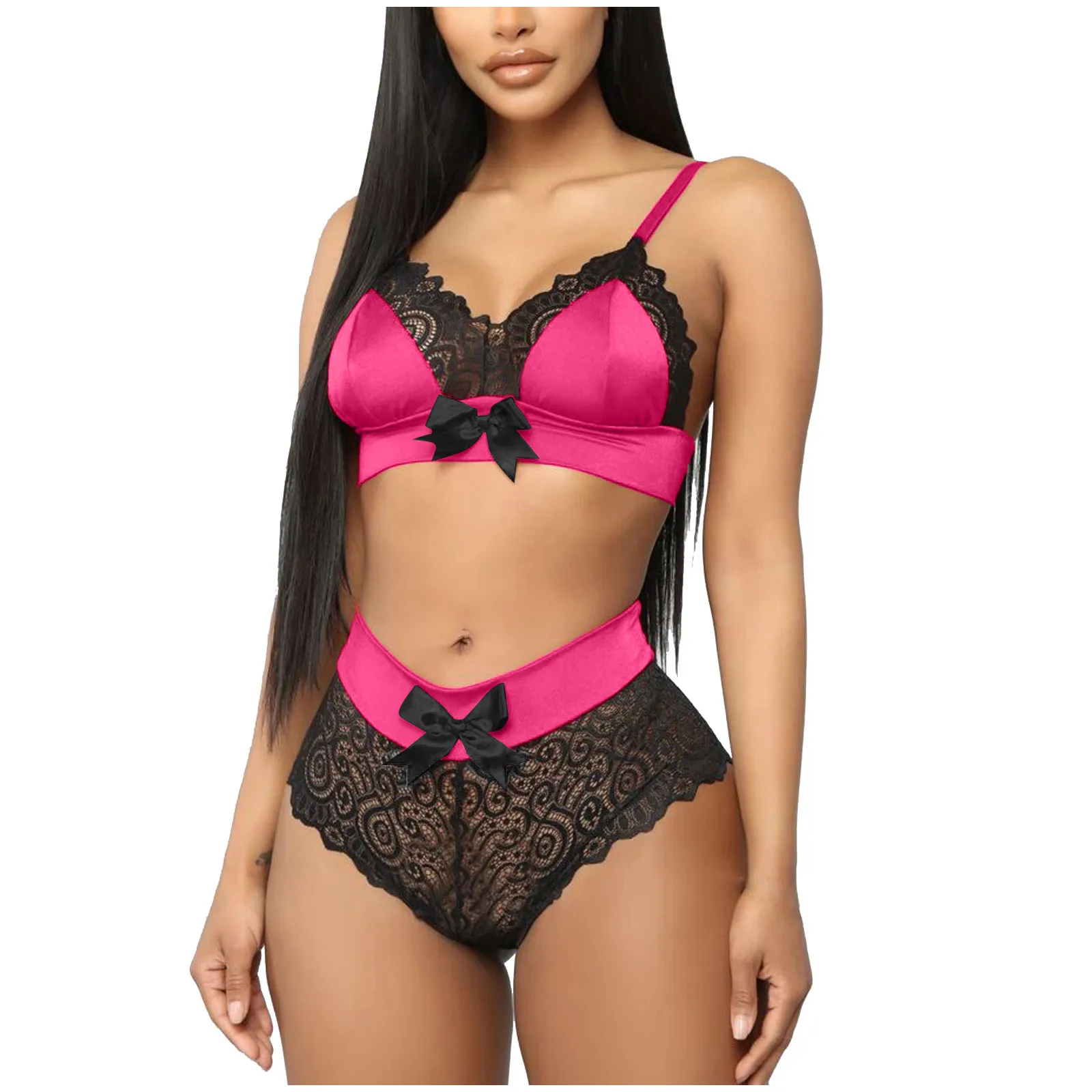 Откровенное соблазнительное сексуальное нижнее белье, кружевное прозрачное женское нижнее белье с бантом и V-образным вырезом, сексуальное эротическое нижнее белье для чувственных женщин