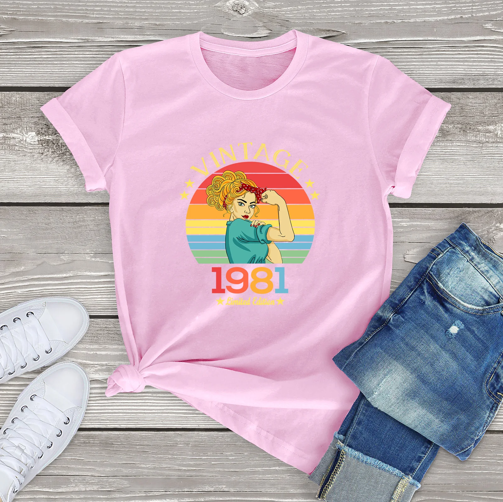 Винтажная хлопковая футболка унисекс, коллекция 1981 года, забавная Летняя мужская футболка в стиле ретро Рози для подарка на 40-й день рождения, женская футболка