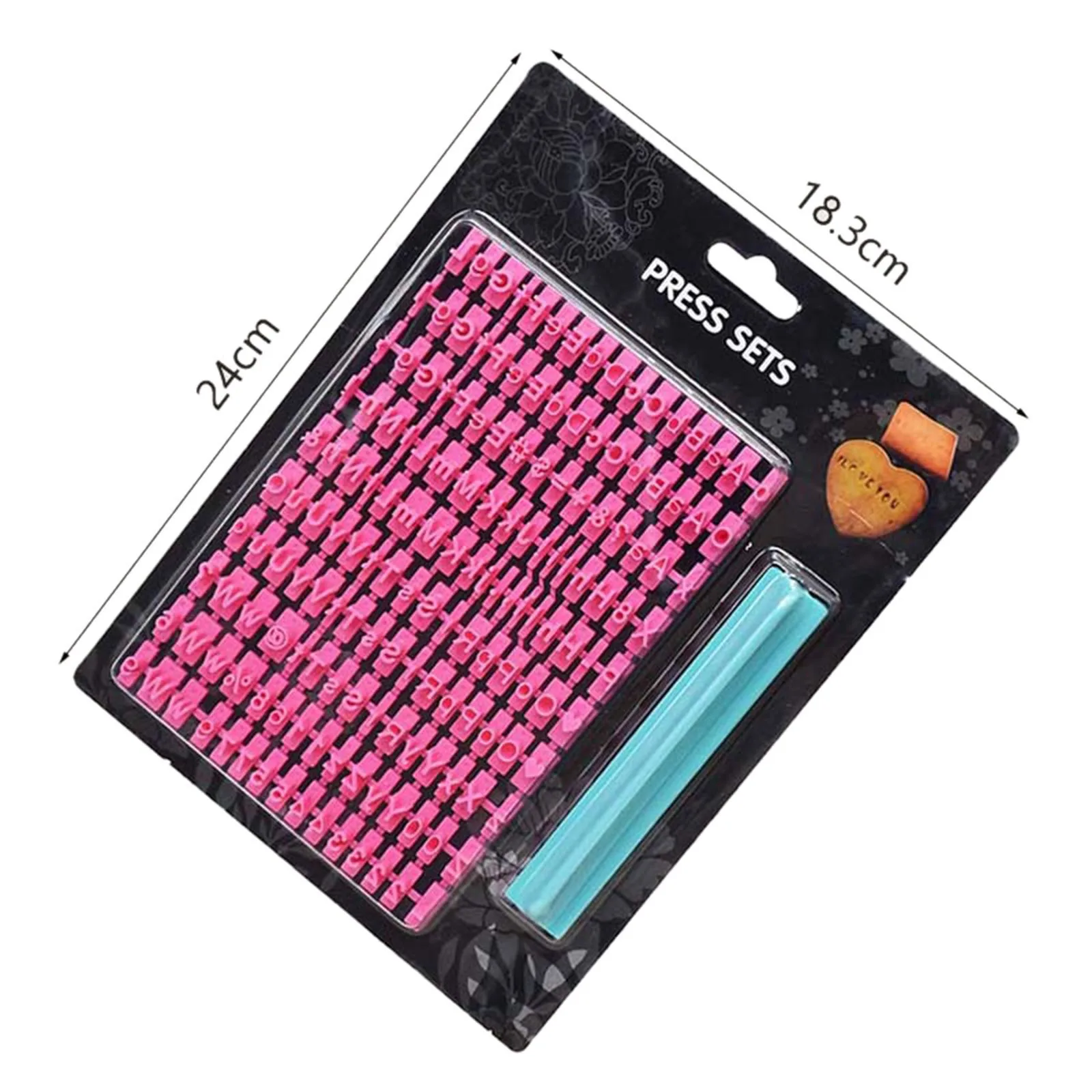 Марка букв и цифр: посылка содержит 2 розовых буквенных знака, штампы печенья, каждый набор содержит 152 различных штампа и 1 фиксированный инструмент