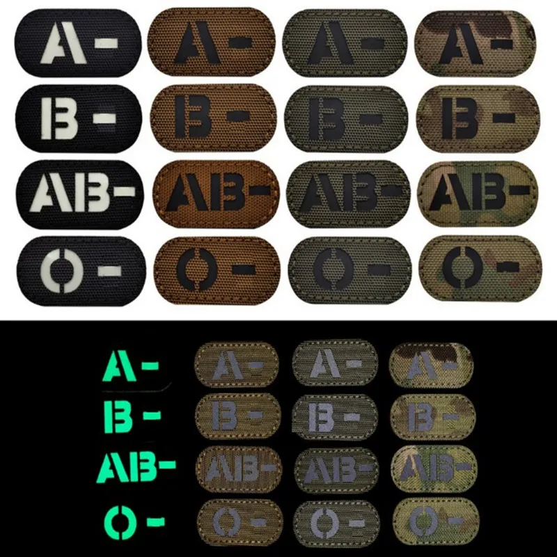 Инфракрасный в темноте патчи A + B + O + AB + POS положительный ИК-патч обратный CP военный патч значок с петлей на крючке