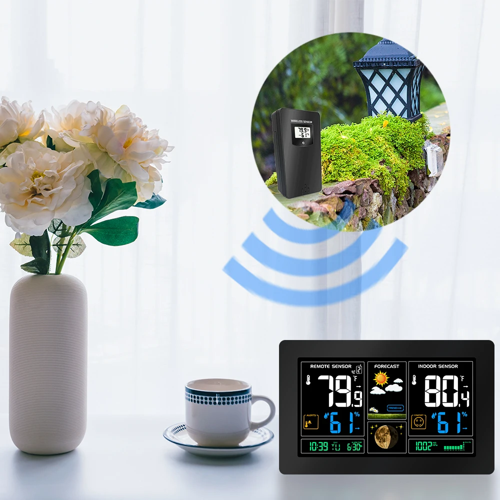 Погодная станция, беспроводной внутренний наружный датчик с будильником, цифровой Прогноз погоды, профессиональный цветной большой дисплей, цифровой внутренний наружный датчик, гигрометр, прогноз температуры