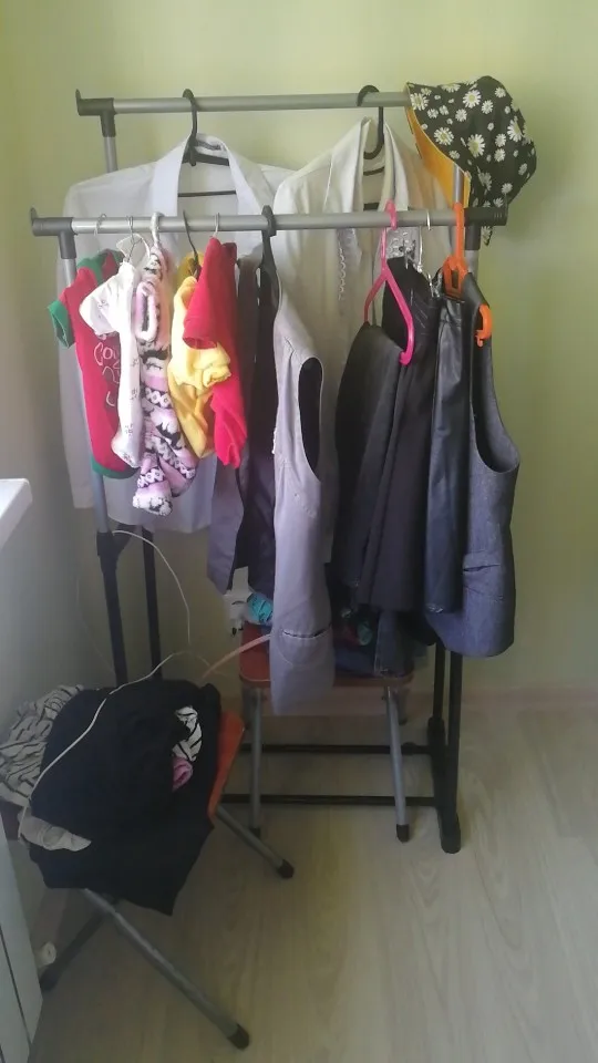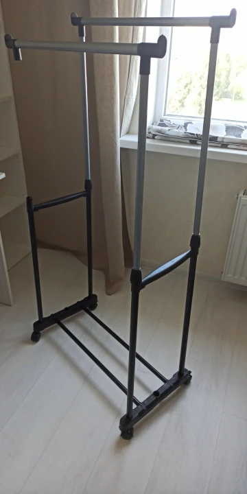 Сегодня получила вешалку. Это нечто!!! Во-первых, либо абсолютно другая модель, либо из-за нехватки деталей - перекладины на одном уровне. Во-вторых, в вертикальном положении не держатся, наклонены друг к другу либо в разные стороны! В-третьих, конструкция (вешалка) не стоит ровно, один из роликов приподнят. В-четвертых, трубки (перекладины) повреждены, трещины насквозь! Хотела оформлять возврат, но не хочется терять время. Никому не рекомендую данный товар, абсолютное г...
