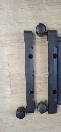 Качество, так себе: Облои не удалены. Пришлось рассверливать посадочное место под штифт колёсика. После сборки, лучше не разбирать - очень хлипкая конструкция.