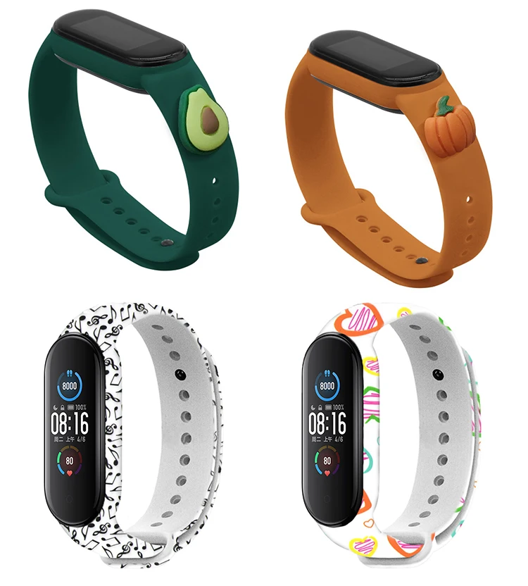 Ремешок для часов Xiaomi Mi Band 3 4, многоцветный Водонепроницаемый сменный Браслет с куклой и цветами для смарт-часов Mi Band 6 5
