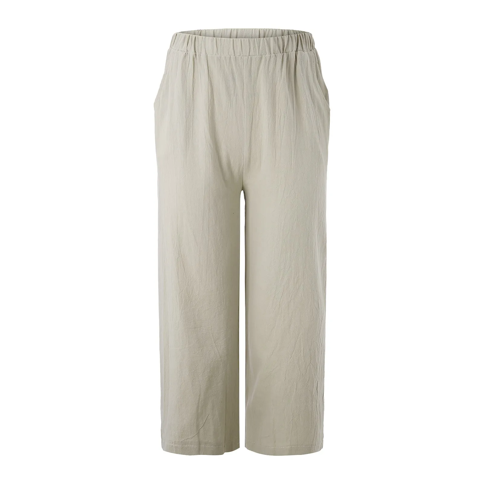Брюки женские хлопково-льняные с широкими штанинами, свободные повседневные Прямые шаровары, мягкие эластичные брюки-султанки с завышенной талией, на лето
