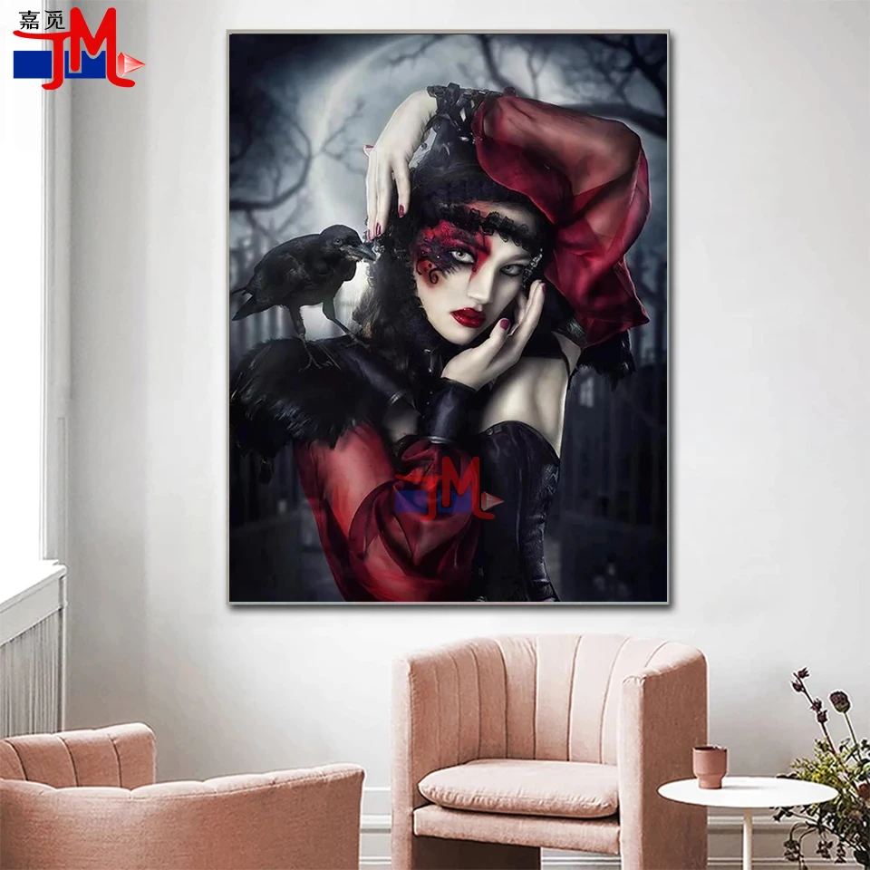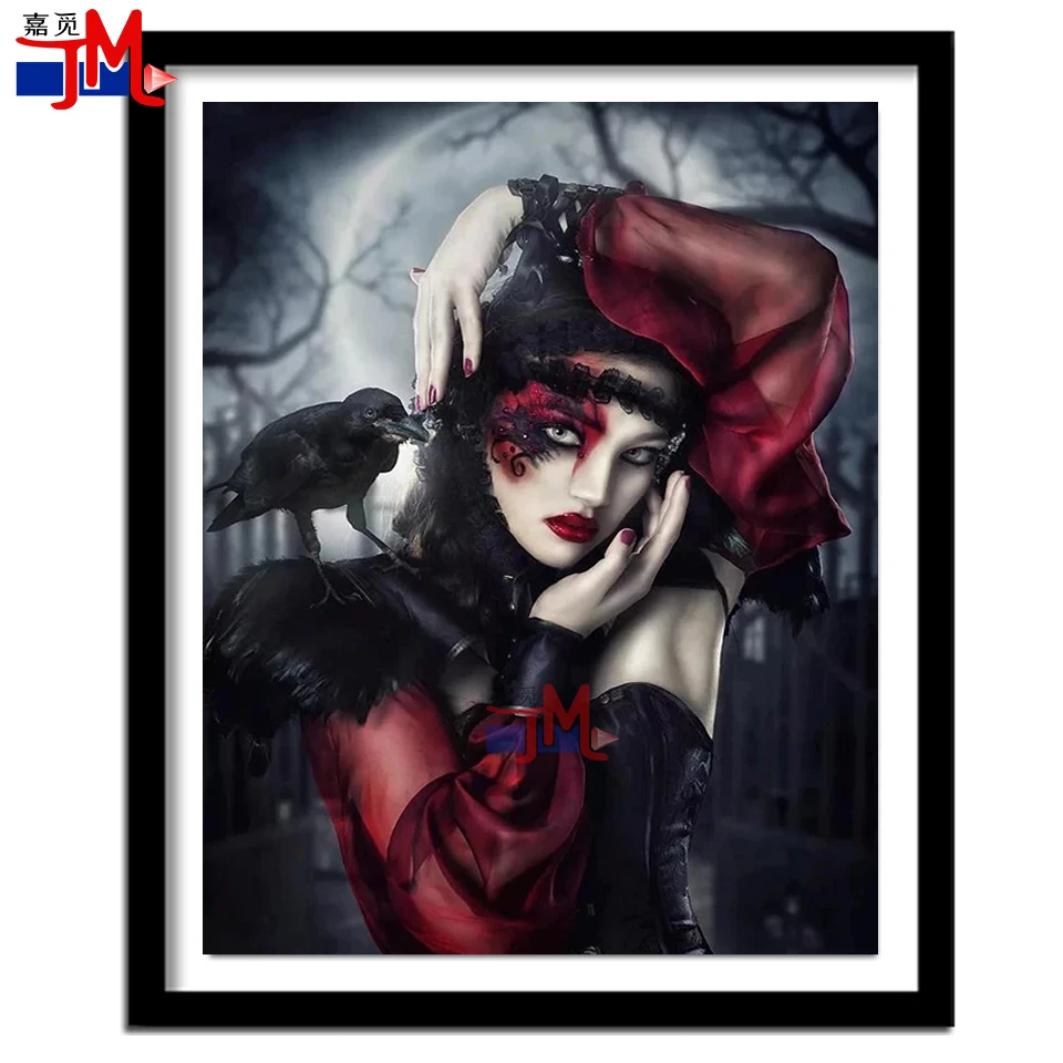 Фантазия Готическая ворона женщина алмазная живопись полный квадрат круглый 5d Сделай Сам Алмазная вышивка Стразы вампир Декор