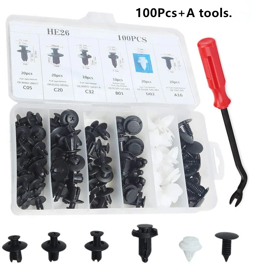 Заклепки автомобильные универсальные, 6 размеров, 100 шт.