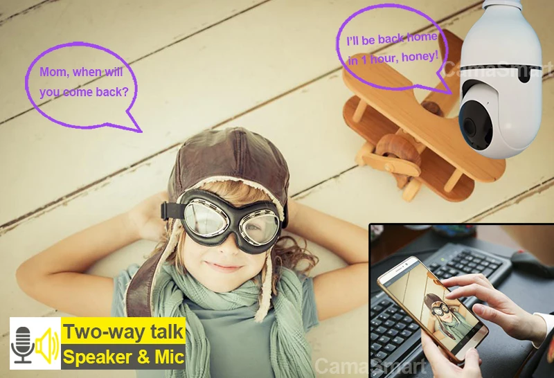 Мини-камера 1080P Wifi с гибким гнездом для лампы E27, поддержка облачного хранилища, удаленный просмотр, защита дома, умное устройство, сигнализация