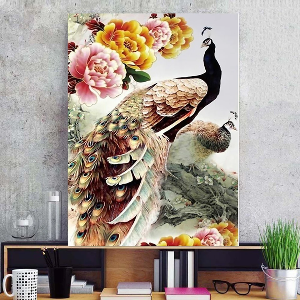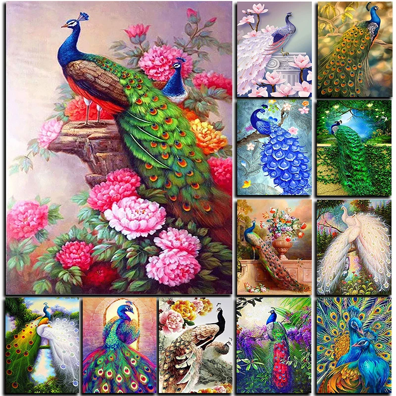 Алмазная вышивка Павлин 5D сделай сам с животными, квадратные алмазыкруглые алмазы ручной работы, искусство сделай сам, украшение для гостиной