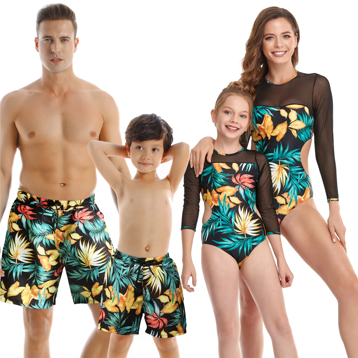 Купальник для мамы и дочки, пляжные шорты для папы и сына, купальни...