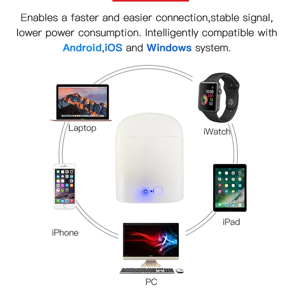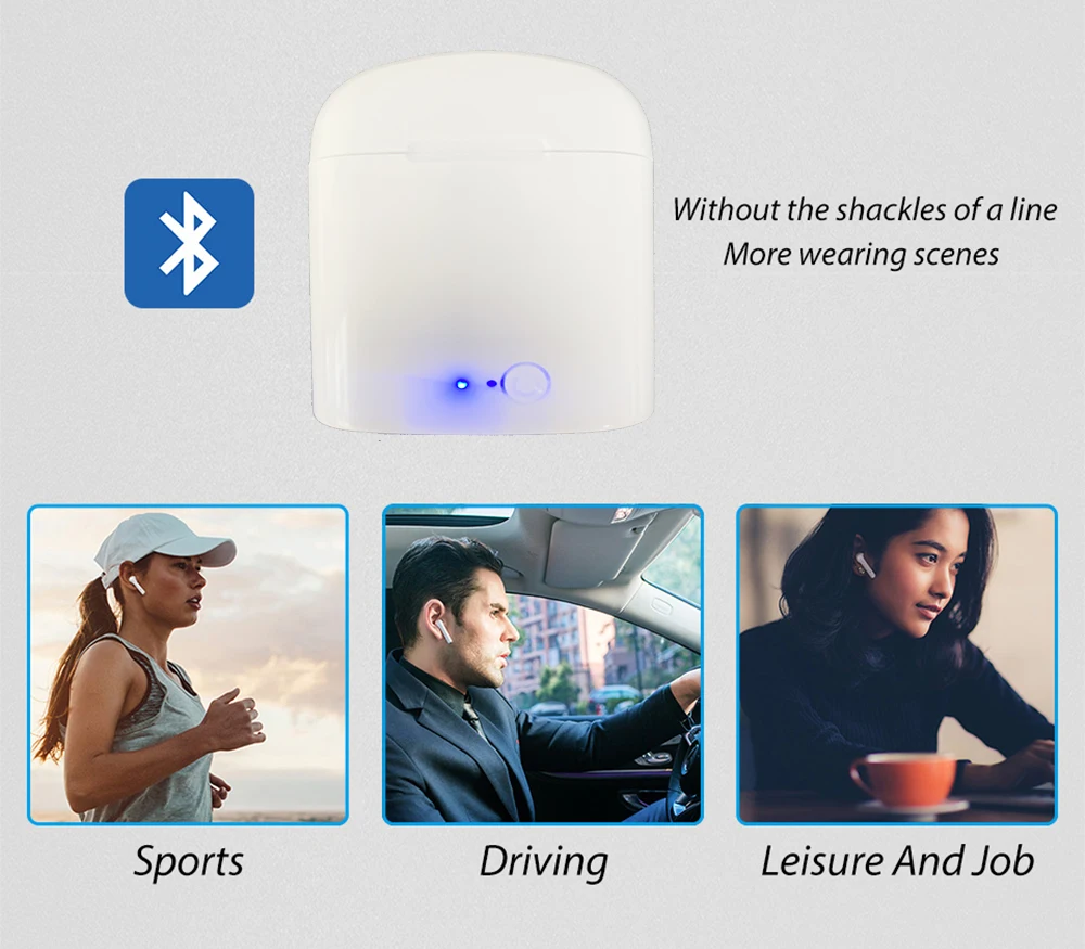 Особенности:1. Прослушивание правильной песни, поддержка песен и звонков,2. Напоминаем номер звонка, последний звонок назад, все интеллектуальные китайские и английские голосовые подсказки, загрузка, пара, отключение питания телефона будет низким голосовым подсказкой;3. Мощность будет отображаться на вашем Iphone, вы можете видеть ситуацию с питанием в любое время, не беспокойтесь о электричестве, Сделайте свою жизнь без беспокойства;4. Одно-два подключения, можно подключить к двум мобильным телефонам одновременно5. Bluetooth-гарнитура, подключенная к телефону после выключения, а затем откройте bluetooth-гарнитуру, автоматически подключится к телефону, что более удобно;6. Интеллектуальная Совместимость: Поддержка всех Bluetooth мобильный телефон, планшет, ноутбук, пение, QQ музыка, фильмы и т. Д., универсальный мобильный телефонСпецификация:1. Драйвер: 15 мм2. Сопротивление: 32 Ом3. Версия Bluetooth: Bluetooth v5.0 + EDR4. Используемый диапазон Bluetooth: 2,4 ГГц5. Уровень мощности: класс II6. Выходная мощность: 30 мВт7. Расстояние Bluetooth: 10 метров барьер8. Частотная характеристика: 20-20000 Гц9. Диапазон рабочего напряжения: 3,0 V-4,2 V10. Чувствительность микрофона: -42 дБ11. С A2DP / AVRCP высокое качество стерео аудио передача и протокол дистанционного управления12. Мощная Схема снижения уровня шума (активное шумоподавление)13. Переключение между китайским и английским (загрузка не подключается к Bluetooth, нажмите переключатель 2 раза, услышите тон переключатель успешно)14. Время разговора составляет около 2-3 часов15. Время работы в режиме воспроизведения музыки около 1,5-2 часа16. Время работы в режиме ожидания составляет около 100 часовПосылка включает в себя:2 x i7s tws bluetooth наушники (левый и правый наушники)1 x Зарядное устройство1 х USB кабель для зарядки1 x Руководство пользователя