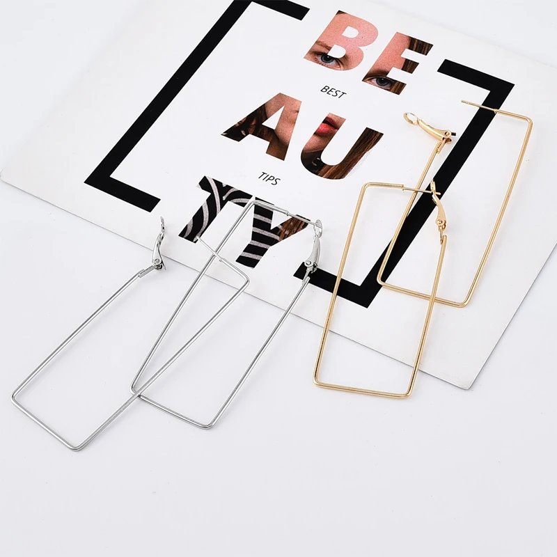 Большие прямоугольные серьги-кольца для женщин, простые геометрические серьги в европейском стиле, уличная мода, украшения для вечеринок RG0310
