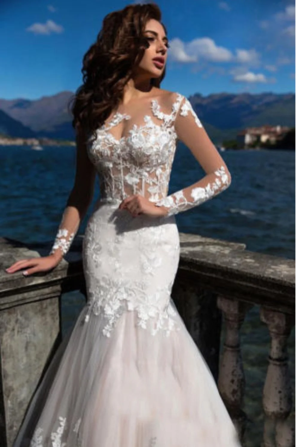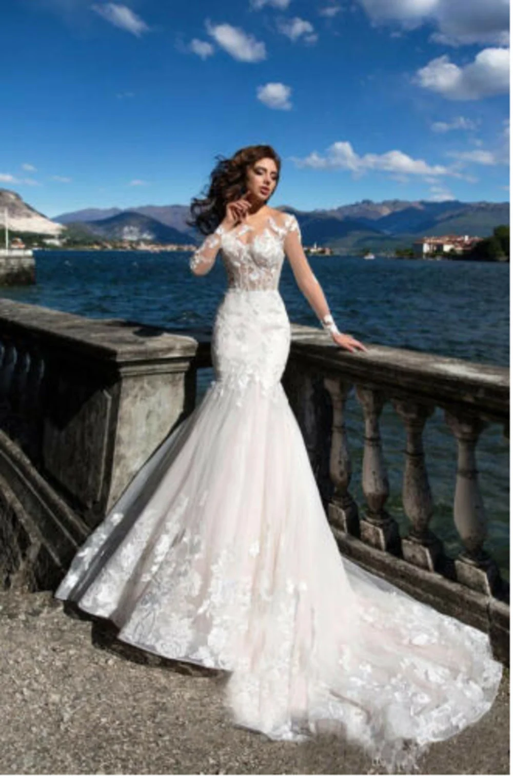 Свадебное платье с юбкой-годе, белое, цвета слоновой кости, африканская кружевная ткань 2019, высокое качество, длинные рукава