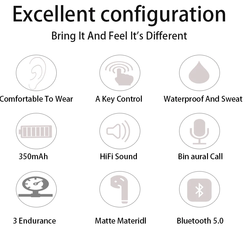 Особенности: 1. Прослушивание правильной песни, поддержка песен и звонков, 2. Напоминаем номер звонка, последний звонок назад, все интеллектуальные китайские и английские голосовые подсказки, загрузка, пара, отключение питания телефона будет низким голосовым подсказкой; 3. Мощность будет отображаться на вашем Iphone, вы можете видеть ситуацию с питанием в любое время, не беспокойтесь о электричестве, Сделайте свою жизнь без беспокойства; 4. Одно-два подключения, можно подключить к двум мобильным телефонам одновременно 5. Bluetooth-гарнитура, подключенная к телефону после выключения, а затем откройте bluetooth-гарнитуру, автоматически подключится к телефону, что более удобно; 6. Интеллектуальная Совместимость: Поддержка всех Bluetooth мобильный телефон, планшет, ноутбук, пение, QQ музыка, фильмы и т. Д., универсальный мобильный телефон Спецификация: 1. Драйвер: 15 мм 2. Сопротивление: 32 Ом 3. Версия Bluetooth: Bluetooth v5.0 + EDR 4. Используемый диапазон Bluetooth: 2,4 ГГц 5. Уровень мощности: класс II 6. Выходная мощность: 30 мВт 7. Расстояние Bluetooth: 10 метров барьер 8. Частотная характеристика: 20-20000 Гц 9. Диапазон рабочего напряжения: 3,0 V-4,2 V 10. Чувствительность микрофона: -42 дБ 11. С A2DP / AVRCP высокое качество стерео аудио передача и протокол дистанционного управления 12. Мощная Схема снижения уровня шума (активное шумоподавление) 13. Переключение между китайским и английским (загрузка не подключается к Bluetooth, нажмите переключатель 2 раза, услышите тон переключатель успешно) 14. Время разговора составляет около 2-3 часов 15. Время работы в режиме воспроизведения музыки около 1,5-2 часа 16. Время работы в режиме ожидания составляет около 100 часов Посылка включает в себя: 2 x i7s tws bluetooth наушники (левый и правый наушники) 1 x Зарядное устройство 1 х USB кабель для зарядки 1 x Руководство пользователя