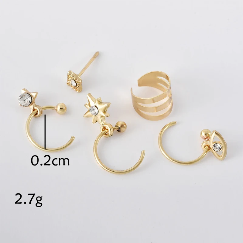 5 шт.компл. Модные женские серьги, серьги с подвеской в виде глаз, звезд, кристаллов, Золотые серьги, клипсы для ушей, комплекты в стиле бохо, Женские Ювелирные изделия на день рождения, подарки RG0308