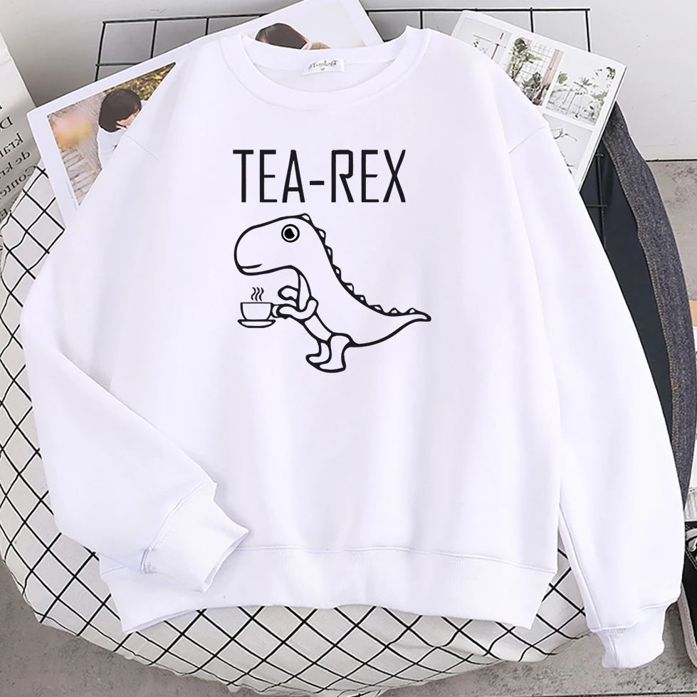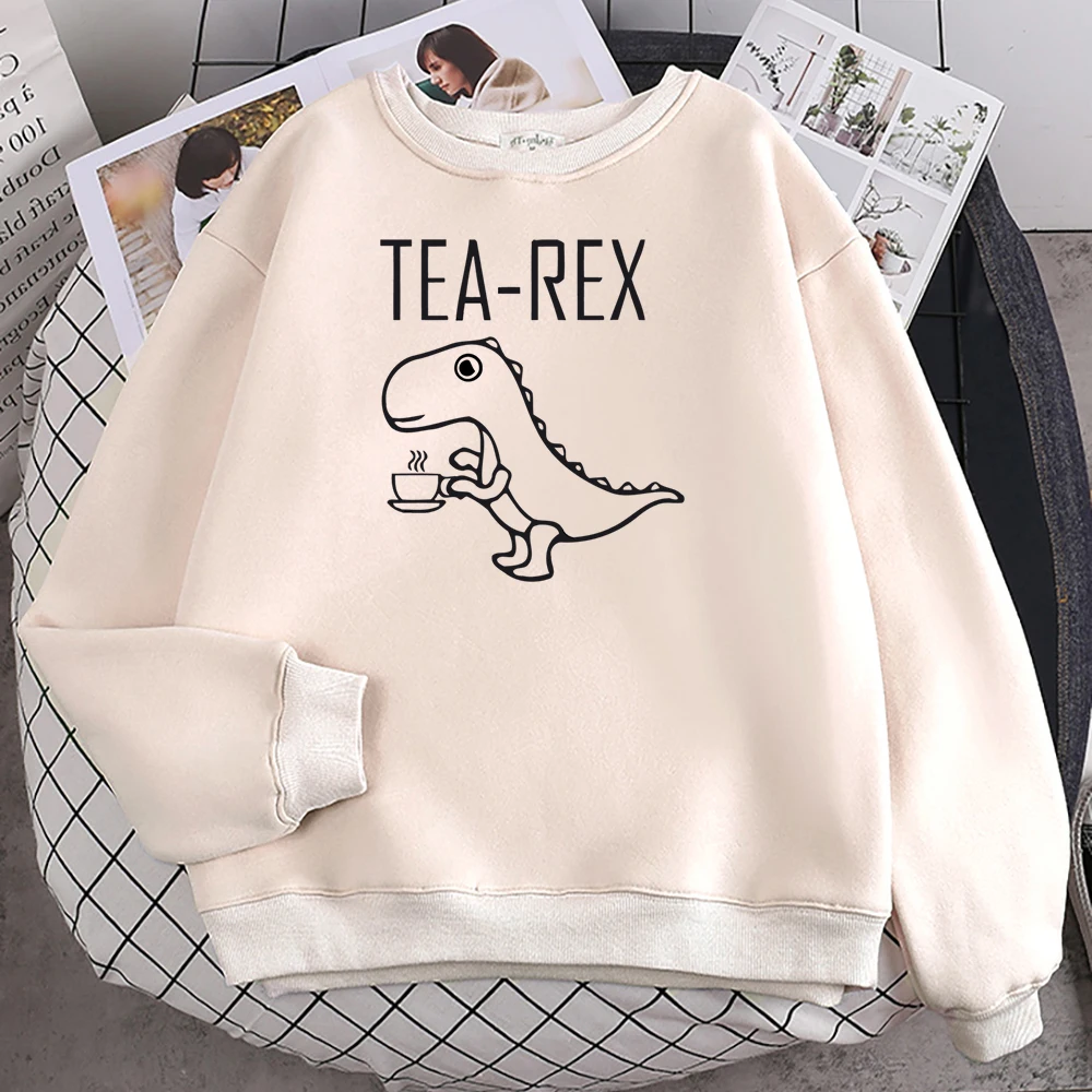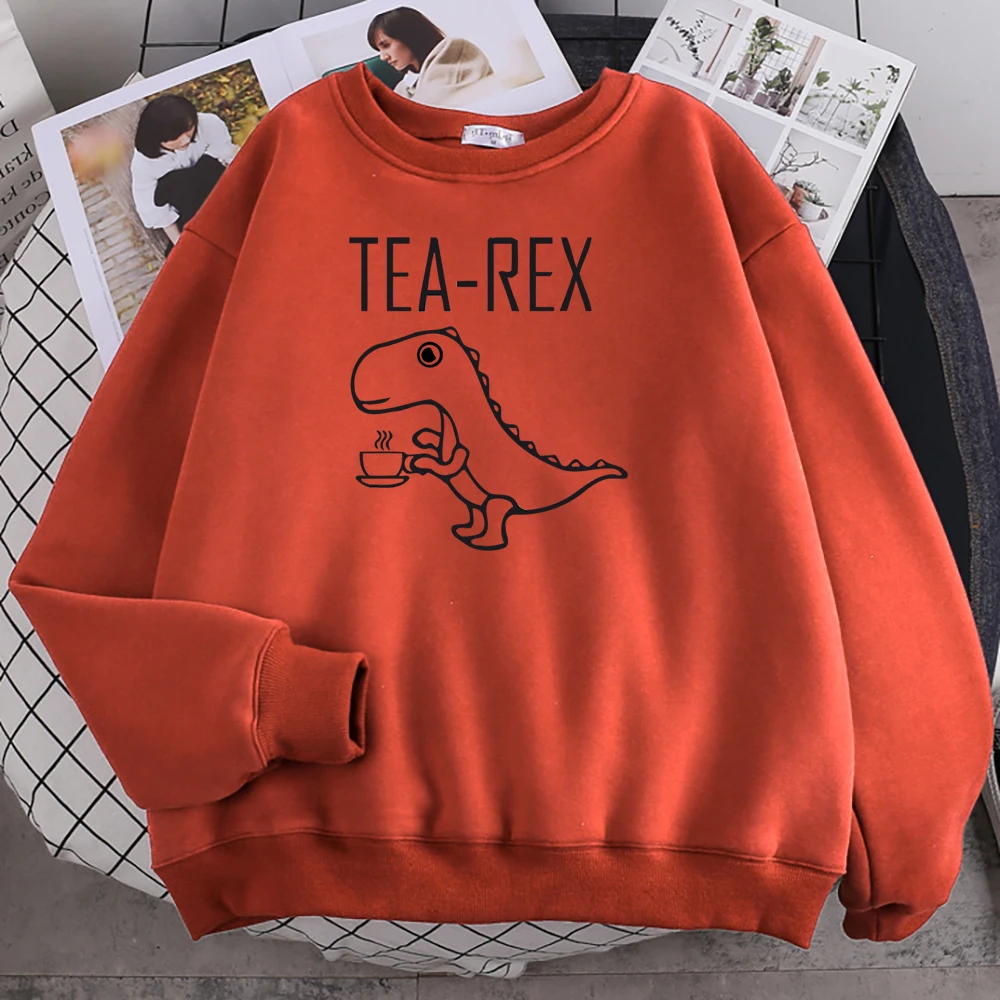 Женский свитшот с принтом чай Рекс, Забавный динозавр, питьевой кофе, Женская Осенняя мягкая толстовка, простые теплые толстовки, уличные женские топы оверсайз