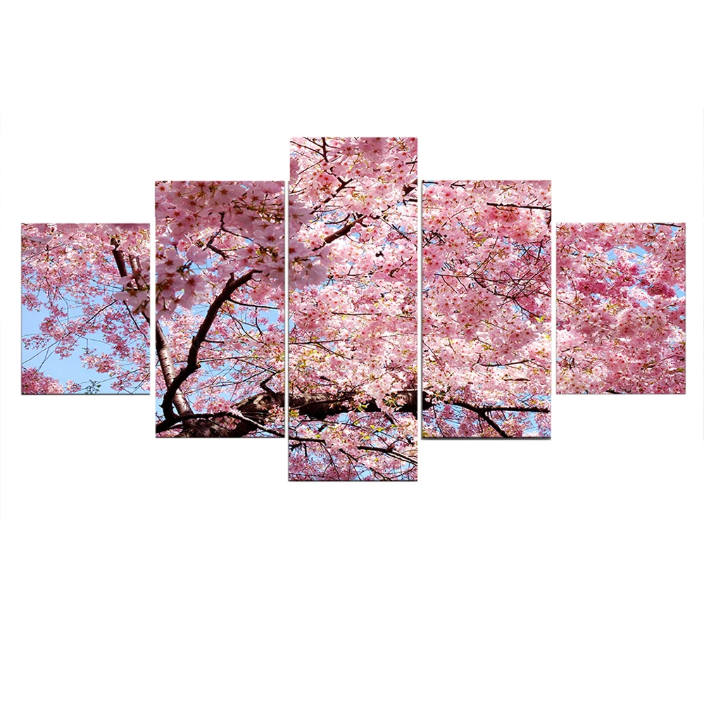 Настенные художественные плакаты Сакура, холст из 5 предметов, укра...