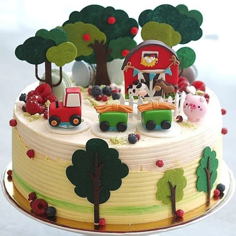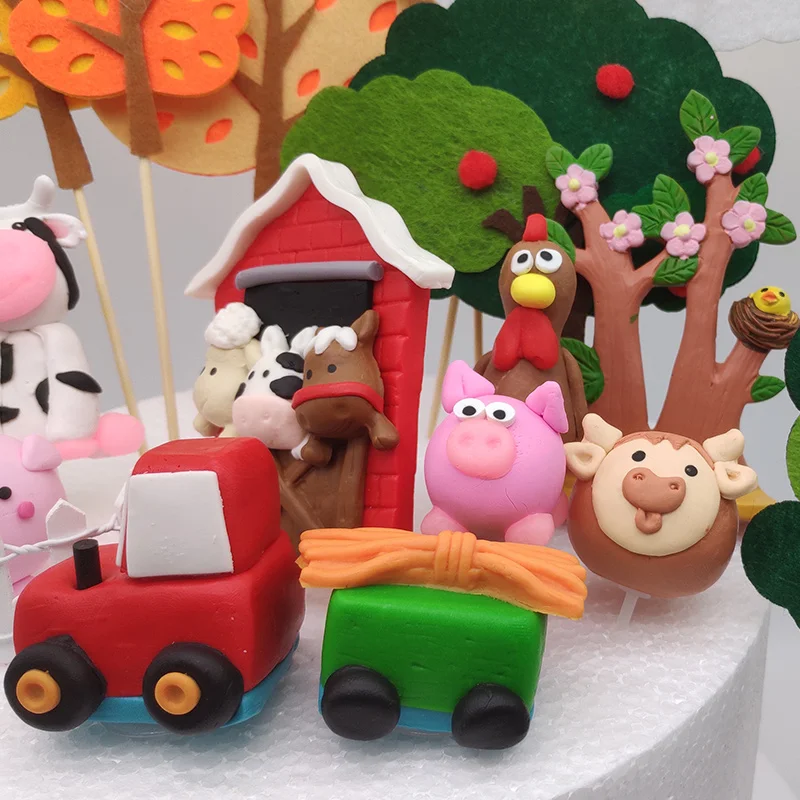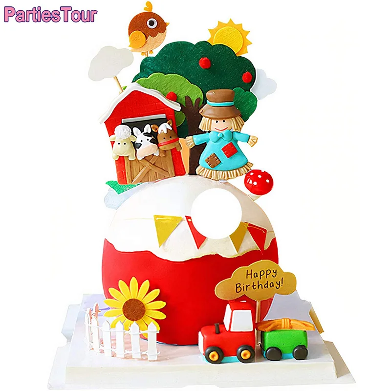 1 шт. украшения для торта в виде животных на ферме, топпер для торта в виде животных на день рождения, топпер для торта в виде коровы, сарая, овцы, торта, цыплят, Топпер для детей