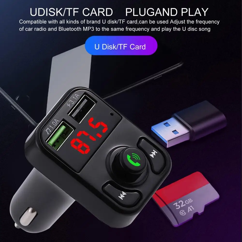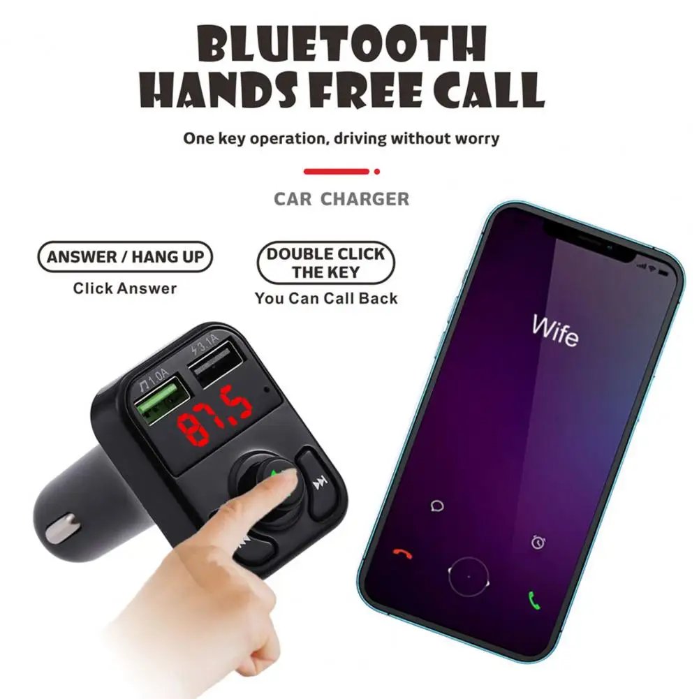 Автомобильное зарядное устройство, FM-передатчик, Bluetooth, двойной USB-разъем, быстрая зарядка для мобильного телефона, 5.0 светодиодный дисплей, Автомобильный MP3-плеер для автомобиля
