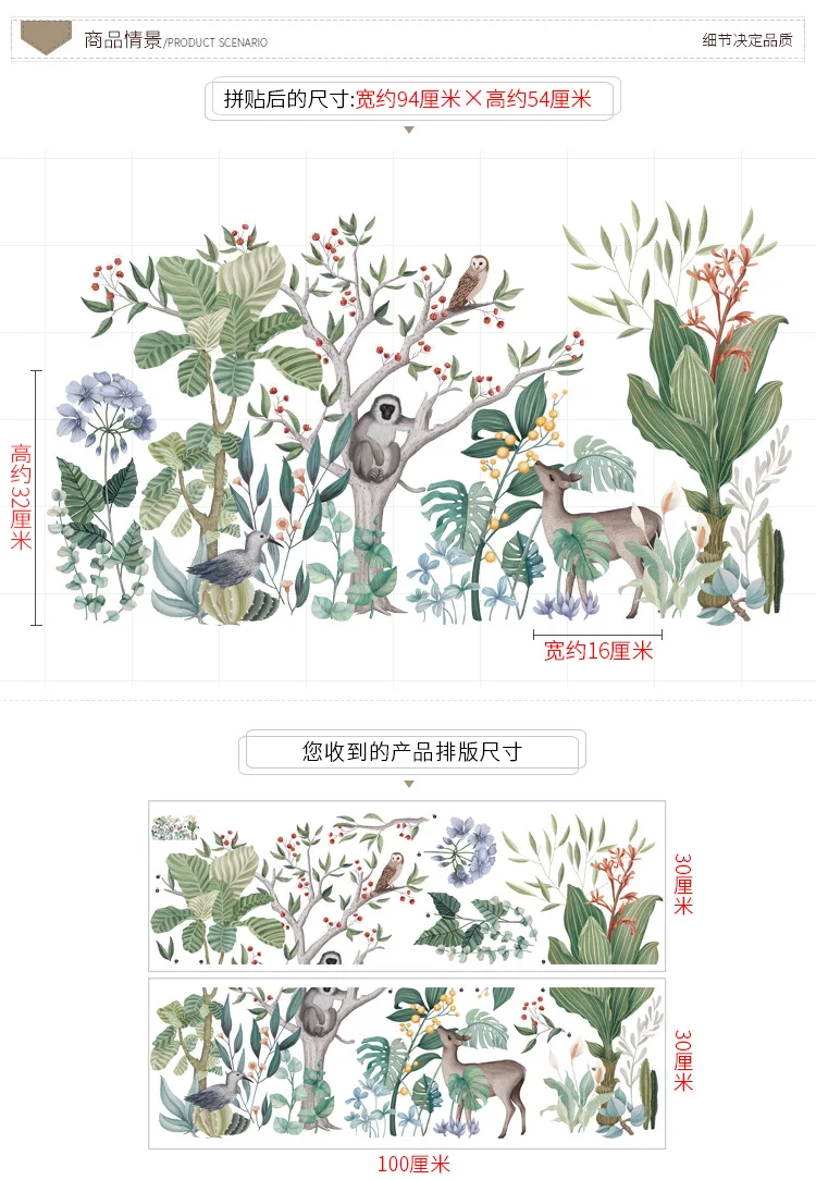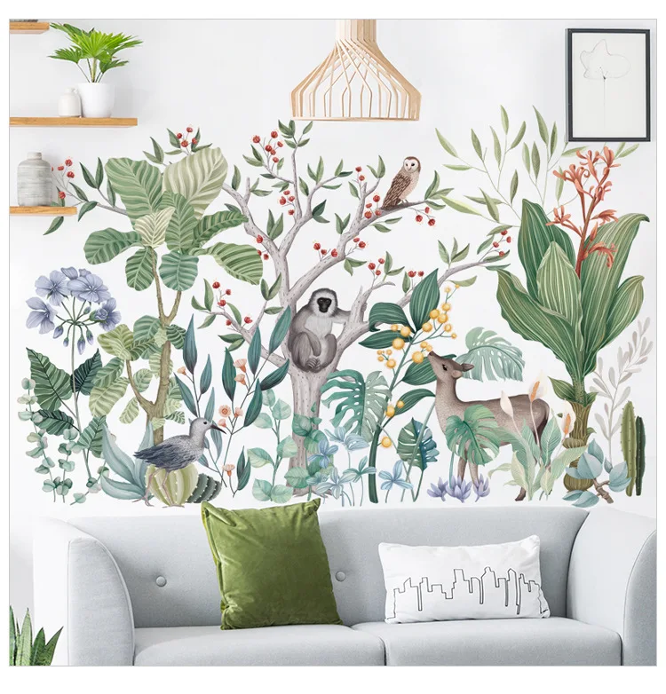 Тропические леса милые животные наклейки на стену детская комната, детский сад, детская комната, Мультяшные настенные украшения Съемная клейкая пленка