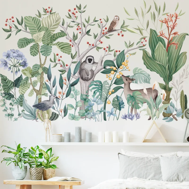 Наклейки на стену с милыми животными в тропическом лесу для детской комнаты, детского сада, детской комнаты, декоративные съемные клейкие пленки с героями мультфильмов