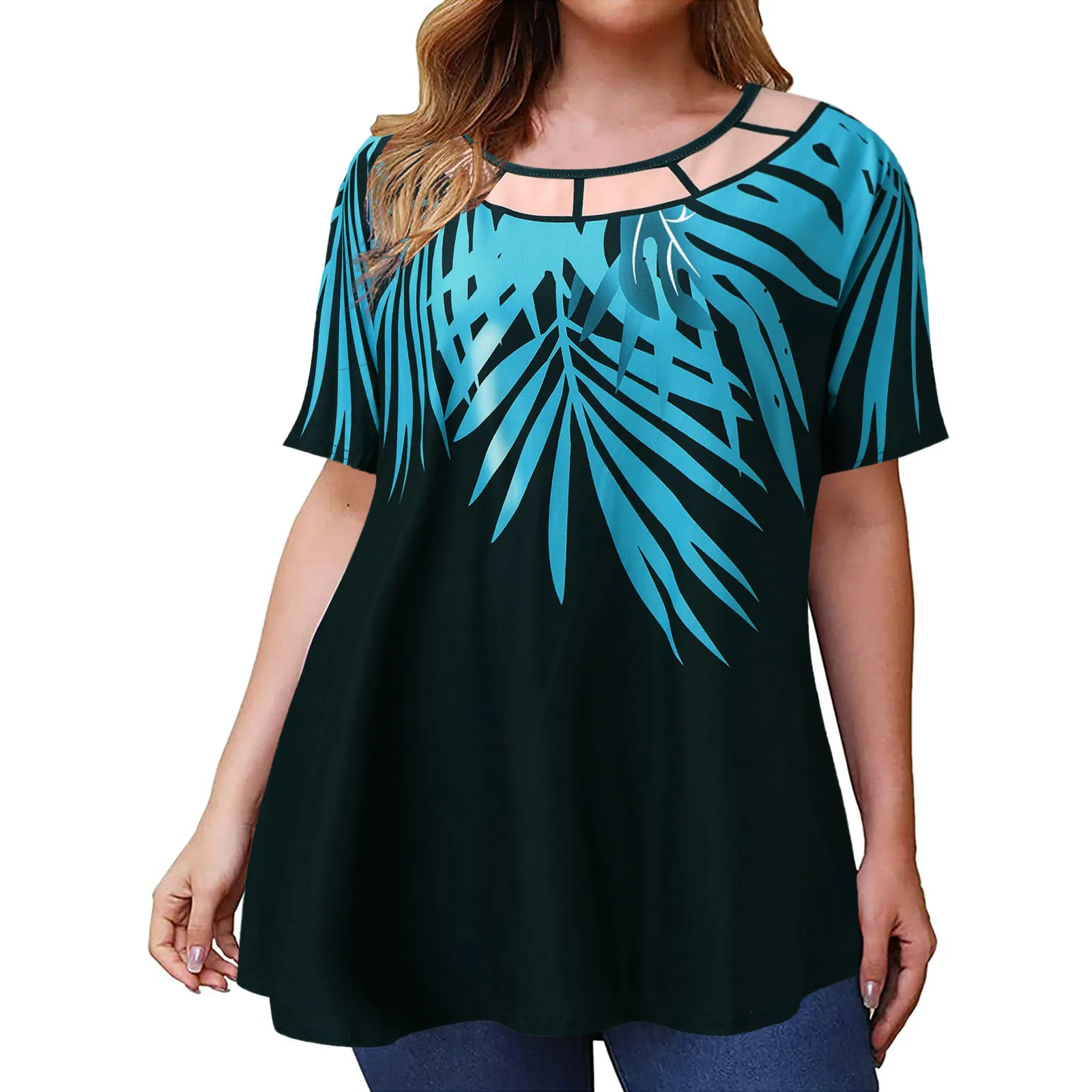 Женская рубашка с коротким рукавом размера плюс, летняя блузка с круглым вырезом и цветочным рисунком, туника, Топ L-5XL