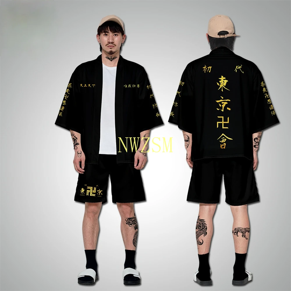 Кимоно мужское с коротким рукавом, топ с аниме принтом Токийский рептилии, черный белый топ для косплея, ханагаки, эмичи Кен, рягуджи, хаори, лето