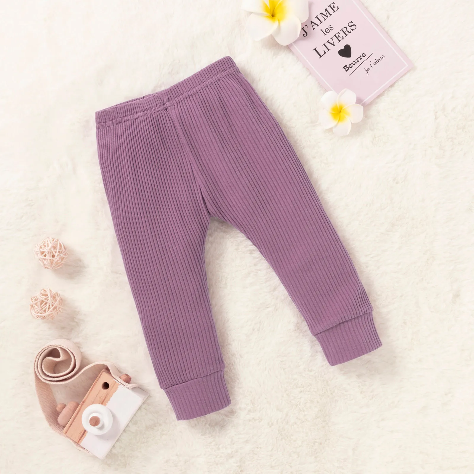 Однотонный комплект одежды в рубчик для новорожденных, весна-осень, для маленьких девочек, однотонный комбинезон с оборками из искусственной кожи + брюки, набор детской одежды