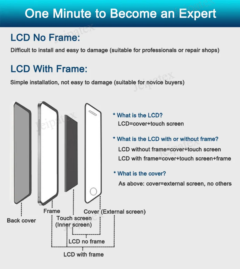 1. Пожалуйста, проверьте экран и проверьте его перед установкой. Если у вас есть какие-либо проблемы, пожалуйста, сначала свяжитесь с нами.2. Пожалуйста, тщательно Установите экран, потому что экран является хрупким продуктом. Особенно гибкий кабель.3. Мы настоятельно рекомендуем профессиональную установку-части, поврежденные во время установки, не принимаются для возврата.