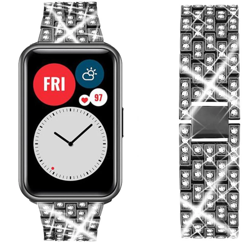 Ремешок Алмазный для Huawei Watch FIT, браслет из нержавеющей стали с металлической пряжкой, подходит для Huawei Watch