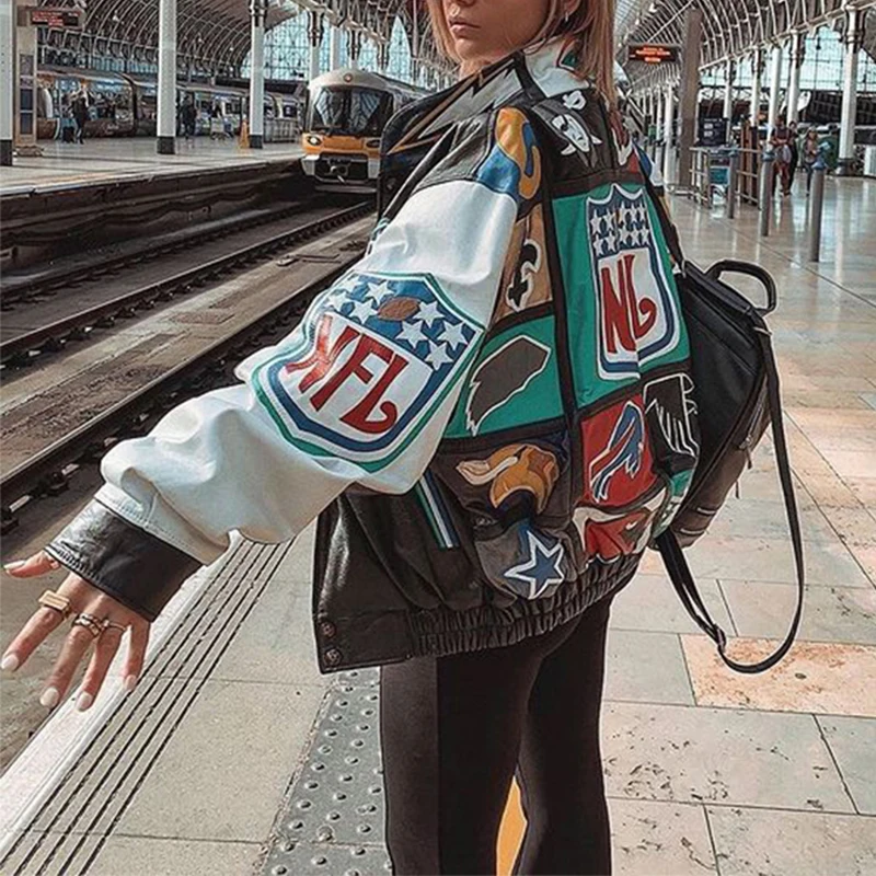 Женская бейсбольная куртка, Повседневная Свободная куртка в америка...