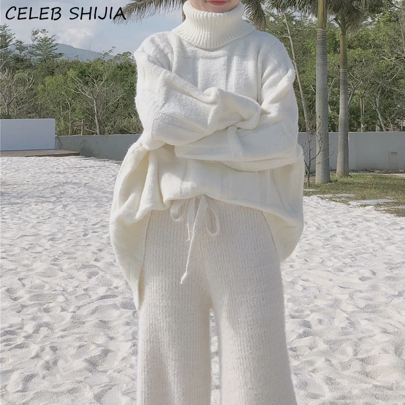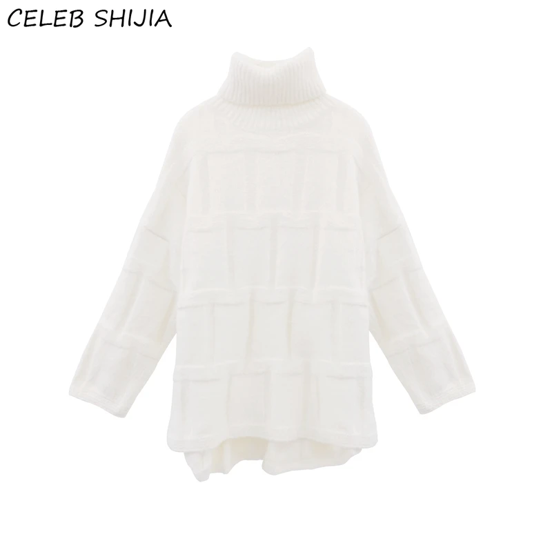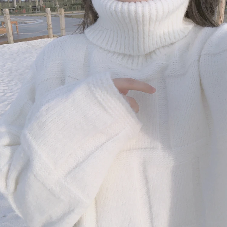 Свитер женский оверсайз, трикотажный белый Водолазка с длинным рукавом, пуловер в Корейском стиле, осень