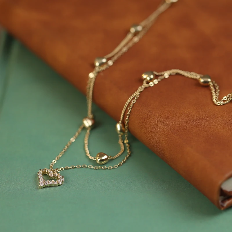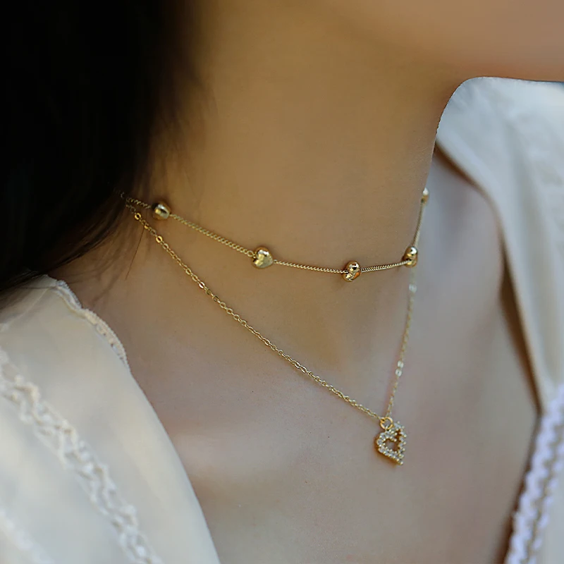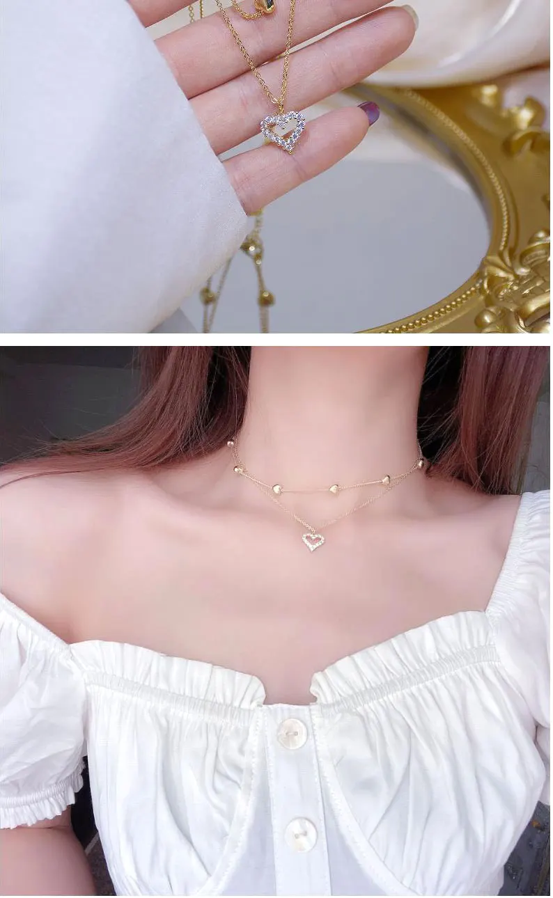 Лидер продаж, Золотое Двухслойное ожерелье в форме сердца, блестящее украшение с цирконием класса ААА, Женская цепочка до ключиц, элегантное очаровательное свадебное ювелирное изделие с подвеской