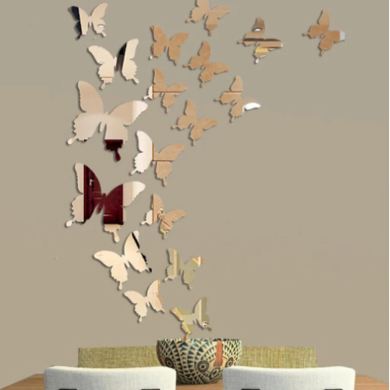 Комплект 12 шт. Настенные наклейки бабочки 3D Зеркальный настенный художественный Декор для дома
