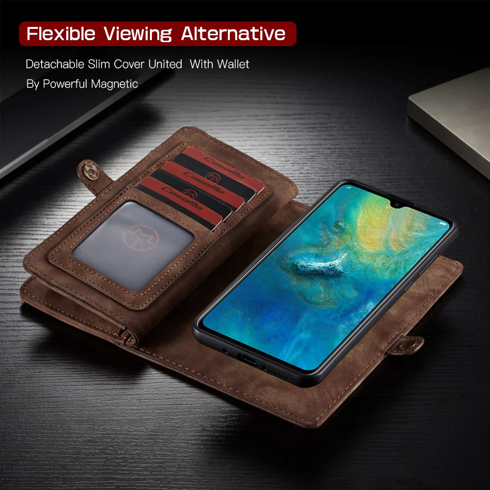 Магнитный кожаный чехол на молнии, Huawei P30 Lite, P20 pro, mate 20 Pro, кошелек с несколькими отделениями, флип-чехол