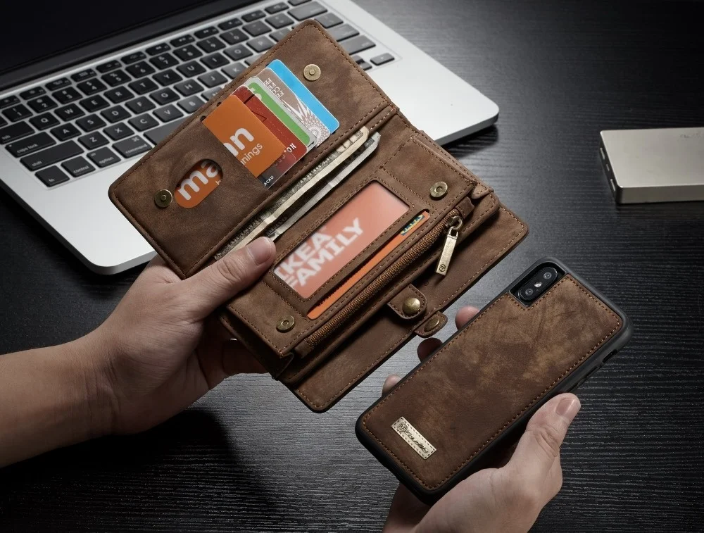 1 x Кожаный чехол-кошелек с магнитным слотом для карт ударопрочный откидной клапан