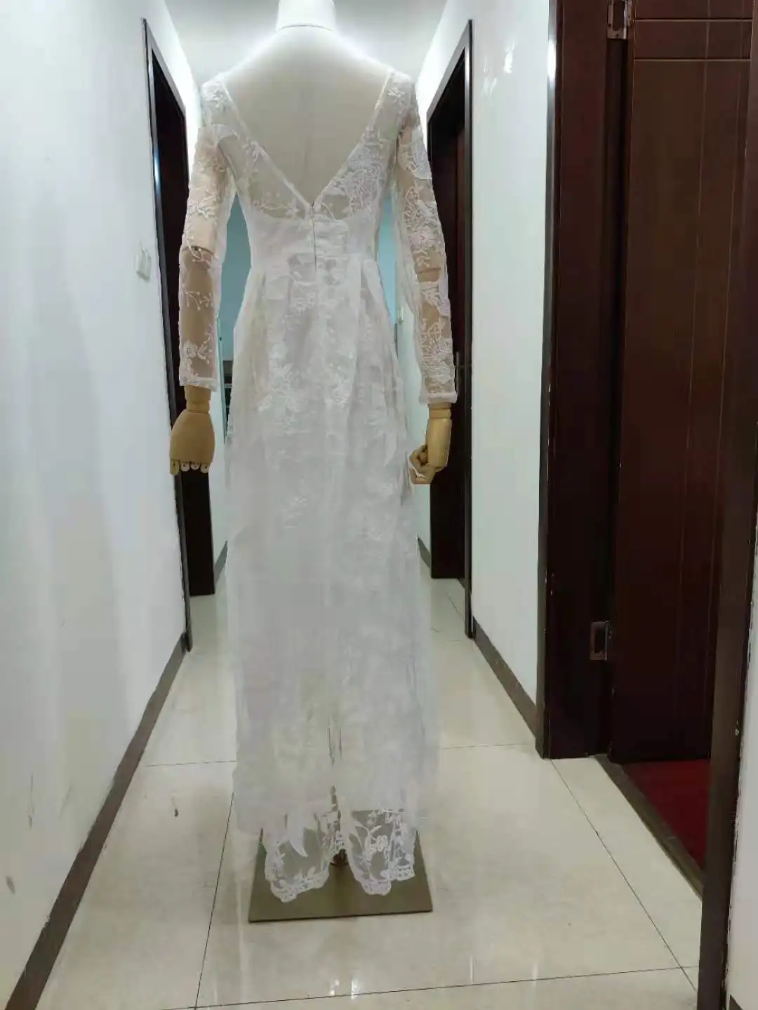 Женское свадебное платье с V-образным вырезом, длинным рукавом