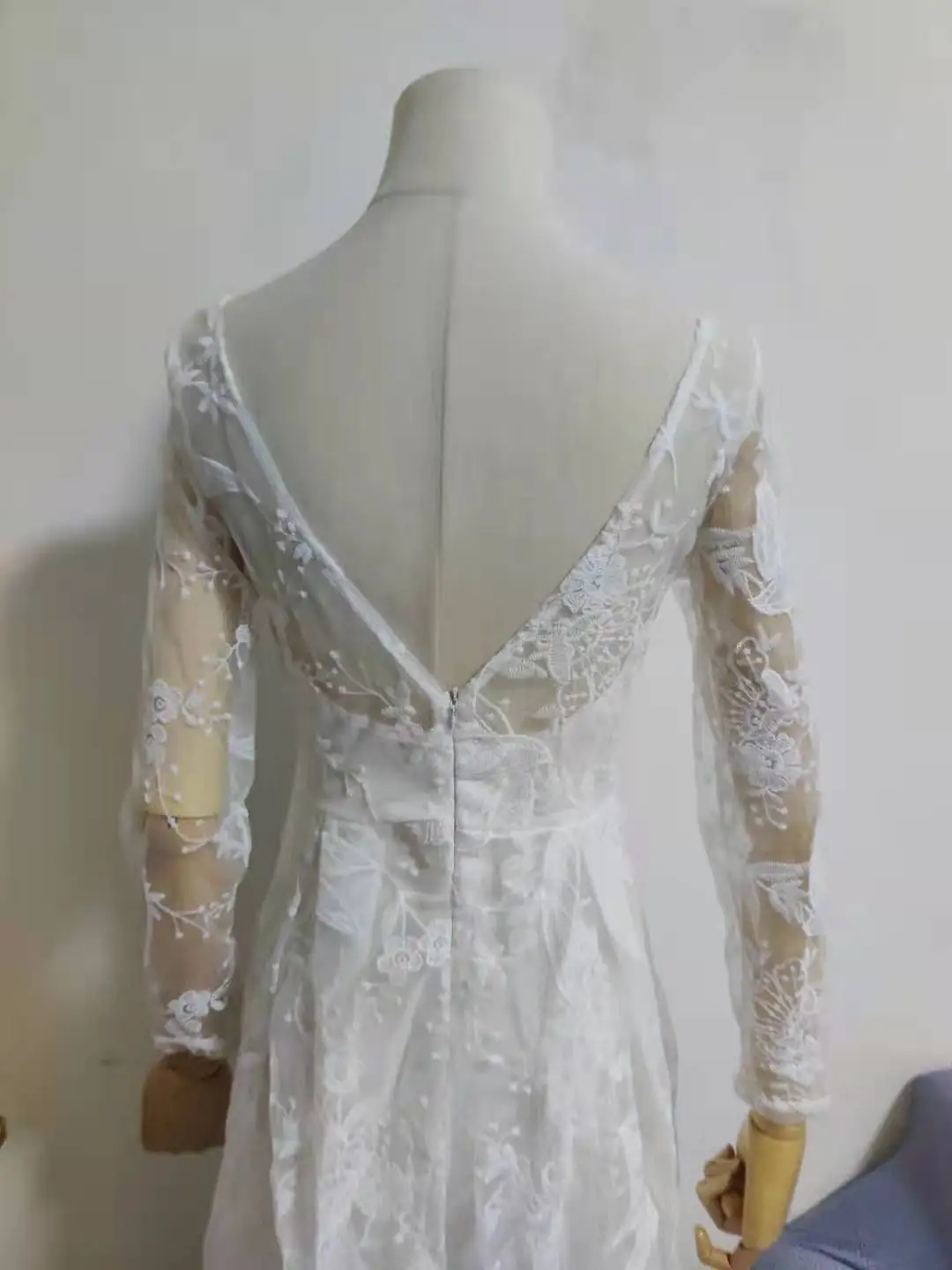 Свадебное платье с длинным рукавом и V-образным вырезом