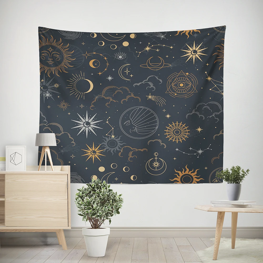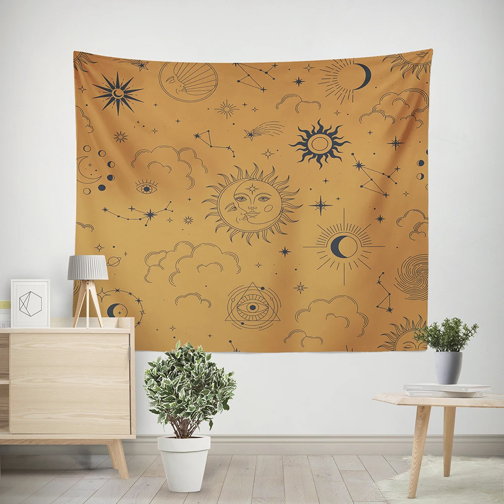 Аксессуары для украшения дома из врачебной медитации, настенный гобелен с рисунком Луны, солнца, гостиной, спальни, домашний декор, настенная подвеска