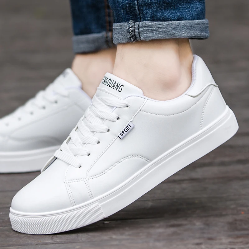 Кроссовки мужские без шнуровки, кожаные, повседневная обувь на плоской подошве, деловые, белые, тренд 2020