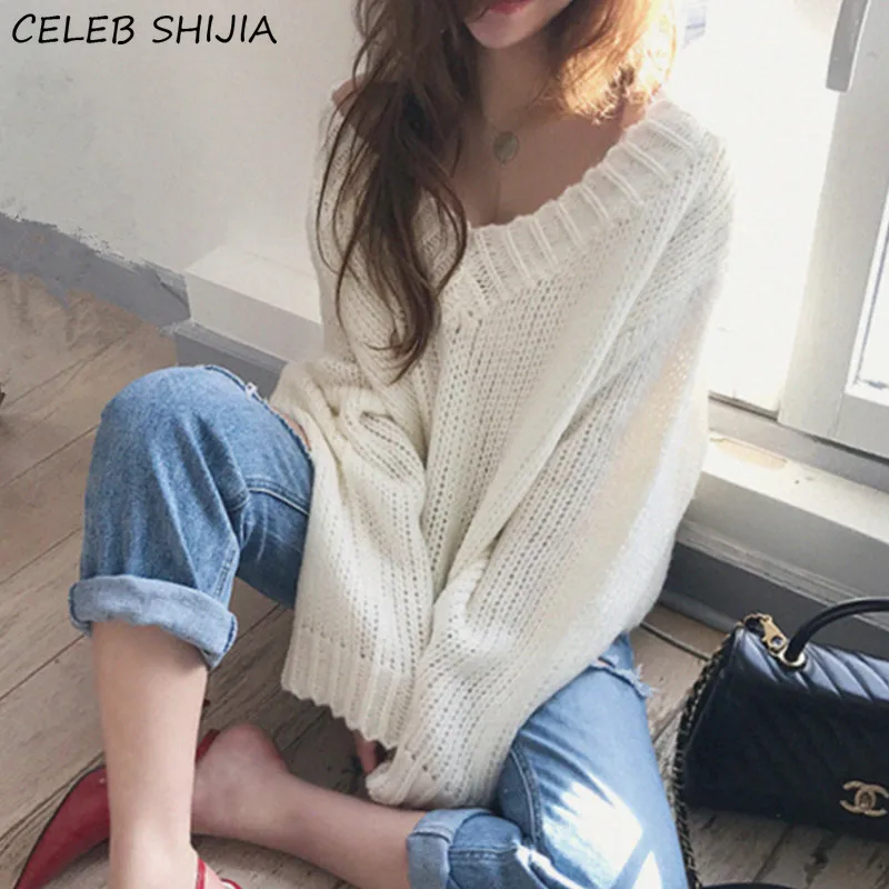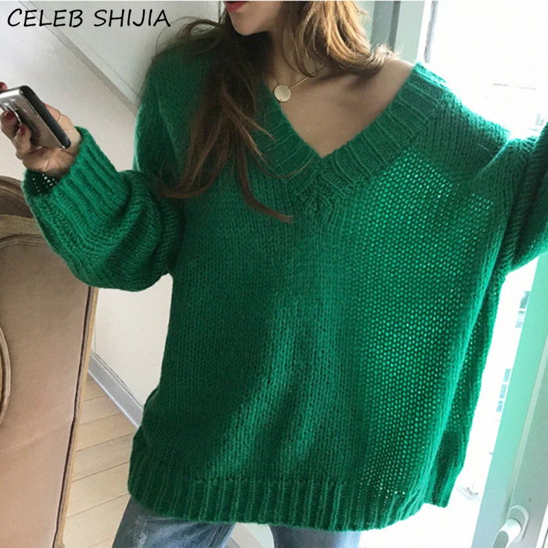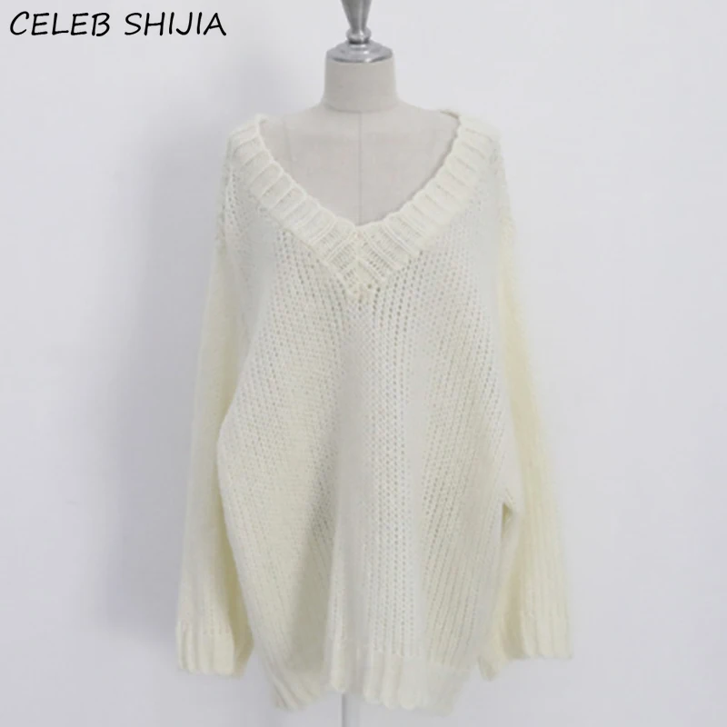 Свитер женский вязаный, оверсайз, с V-образным вырезом