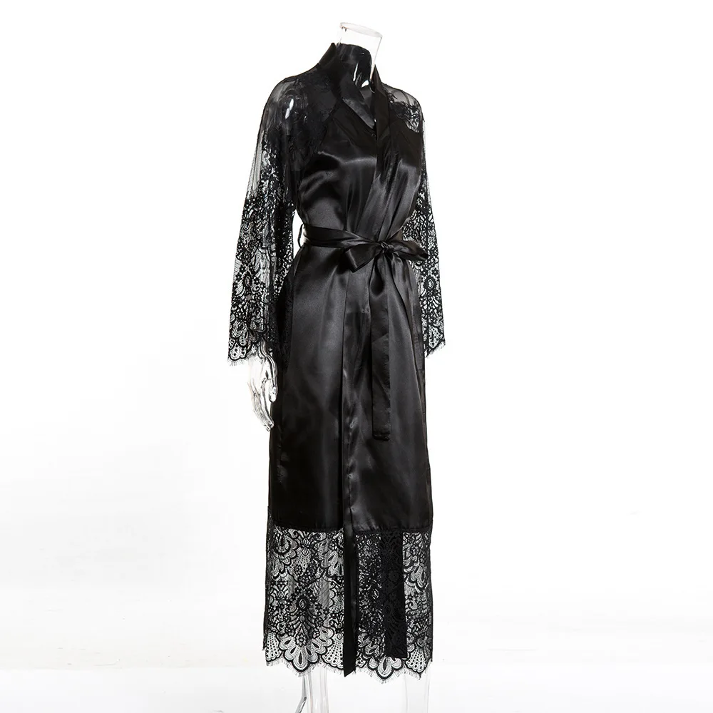 Сексуальный длинный халат с поясом женская ночная рубашка с Рукавом...
