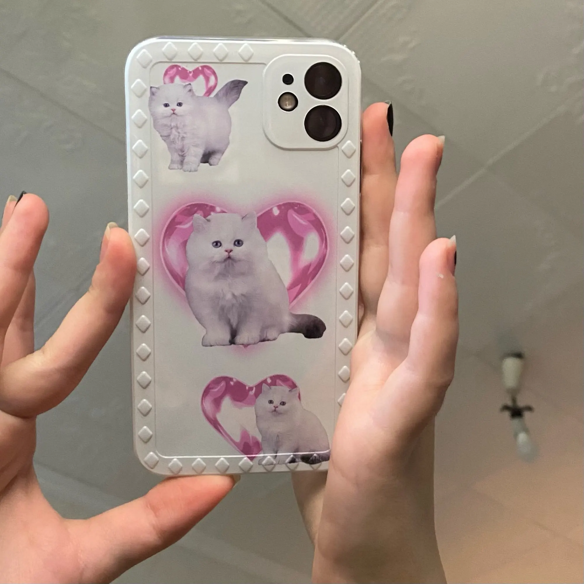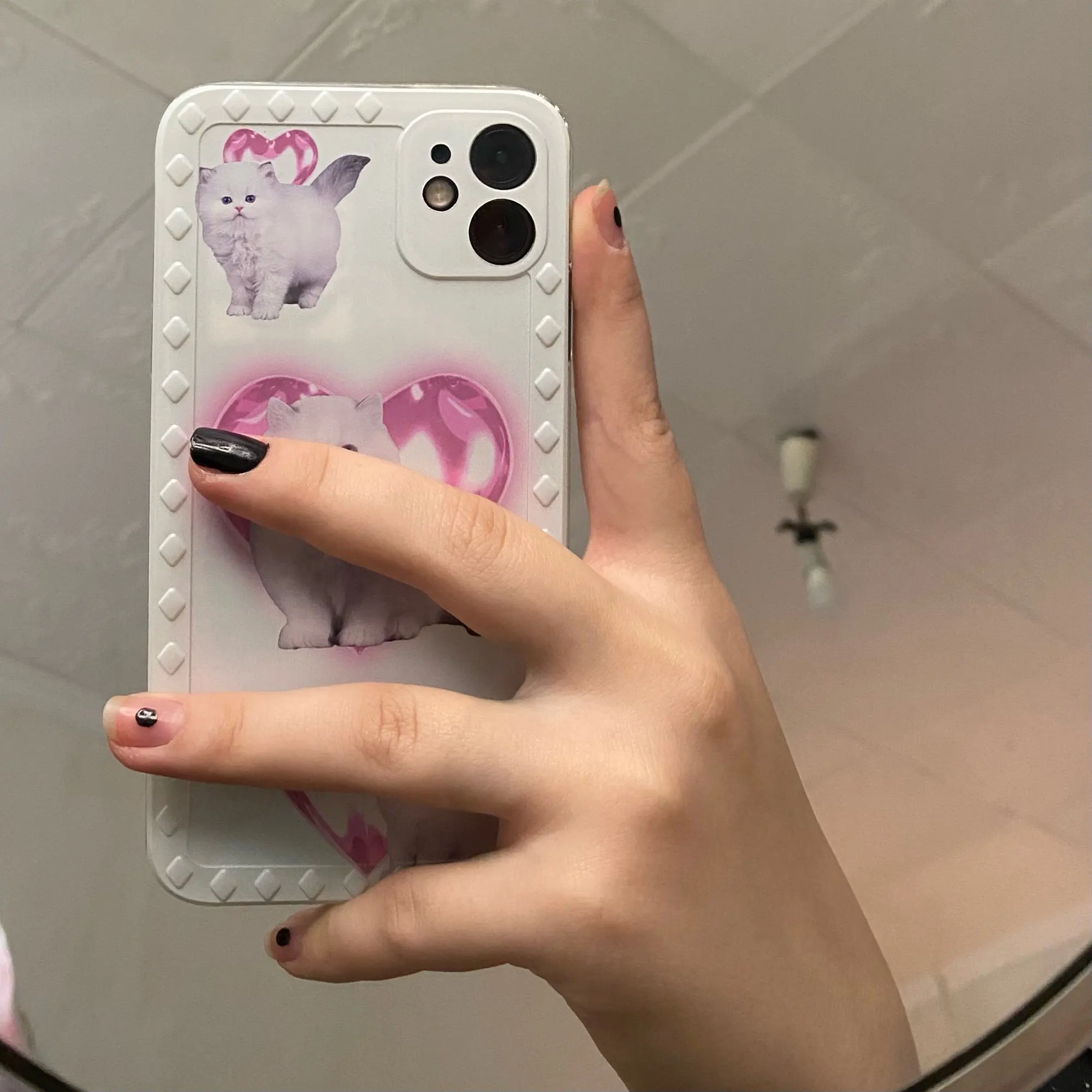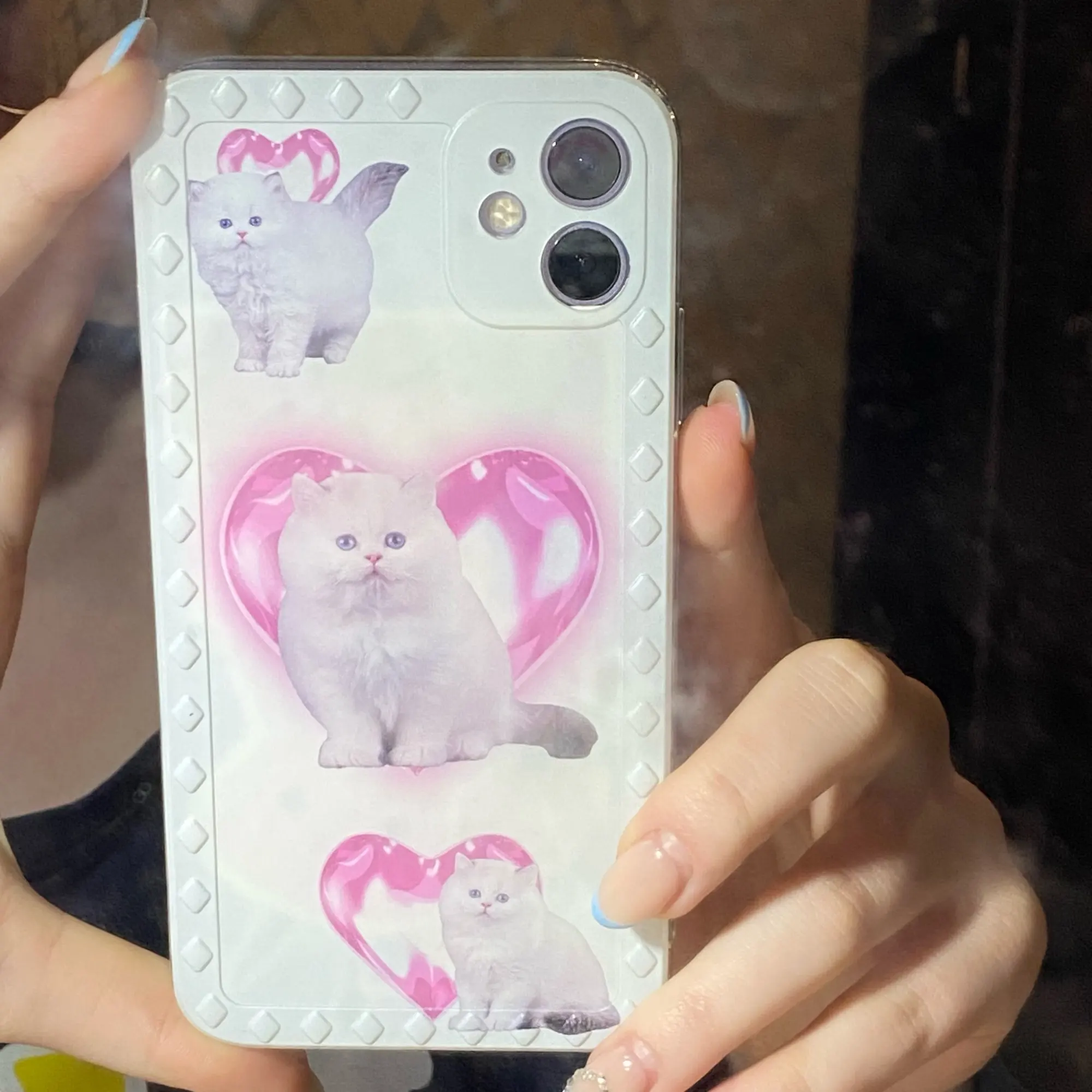Мягкий силиконовый чехол для iphone 12, 11 Pro Max, XR, 12ProMax, 8, 7 plus, X, XS, XSMAX, с изображением милого кота и розового сердца