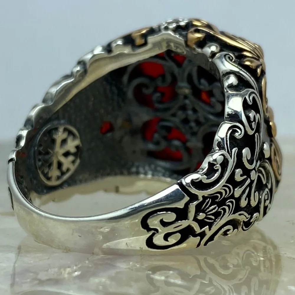 Серебряное мужское кольцо ручной работы в турецком стиле с рубином, все размеры