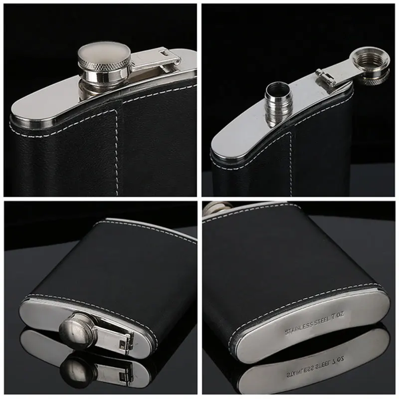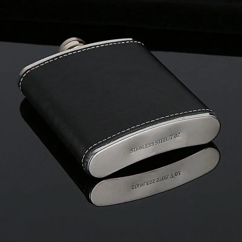 Портативная фляжка из нержавеющей стали горячая Распродажа, фляжка для виски, вина, бутылка в подарок, 56789 унций, с кожаным держателем, дропшиппинг